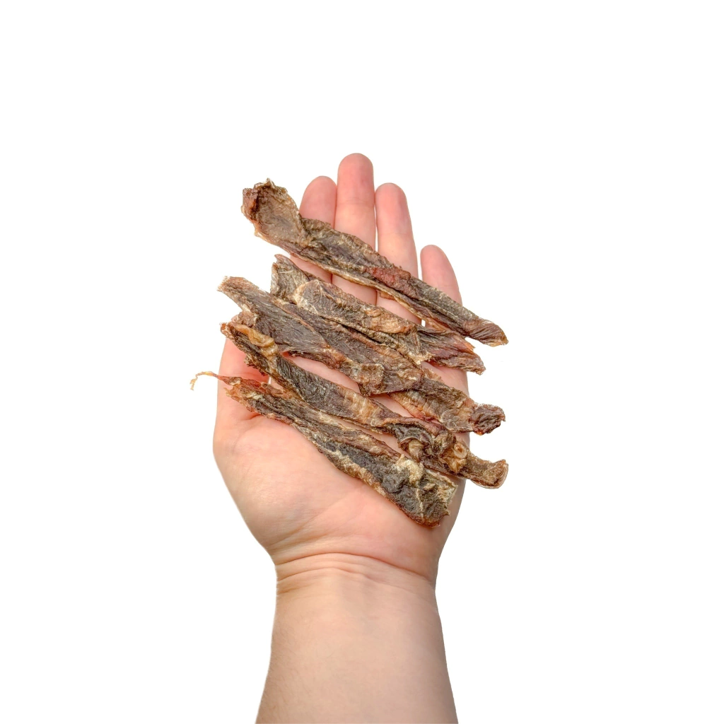 Petisco 100% natural, feito com ingrediente de origem animal e desidratado lentamente em temperatura controlada garantindo maior durabilidade e conservação do produto sem uso de químicos.