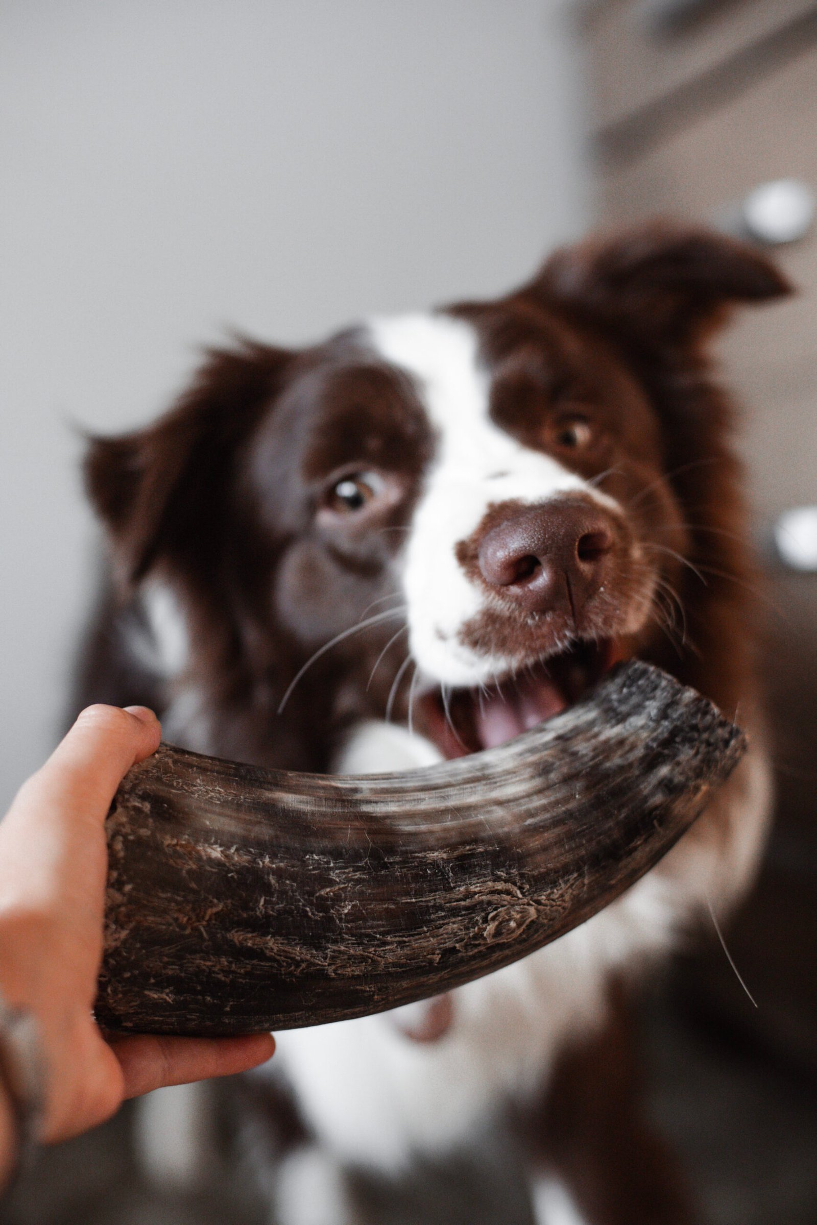 Chifre Bovino:  O animal pode passar semanas para roer esse mordedor, que é super rígido por ser formado por queratina. Pode ser recheado, se tornando um excelente enriquecimento ambiental. Ótima opção para animais acima do peso. Esse tamanho é ideal para cães de pequeno e médio portes.