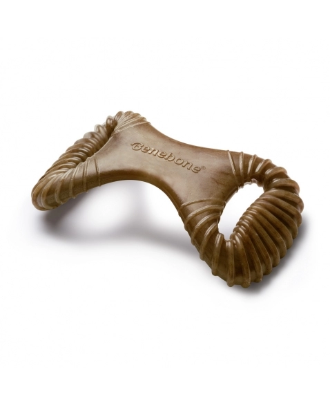 O Benebone Dental Chew é um brinquedo que possui um formato arredondado, ergonômico e com ranhuras para aumentar a esfregação dos dentes e, consequentemente, o auxílio na limpeza. Obviamente não substitui a escovação diária, mas ajuda e muito nessa tarefa de manter nossos melhores amigos sem aquele bafinho de zumbi que tanto incomoda no dia a dia.
