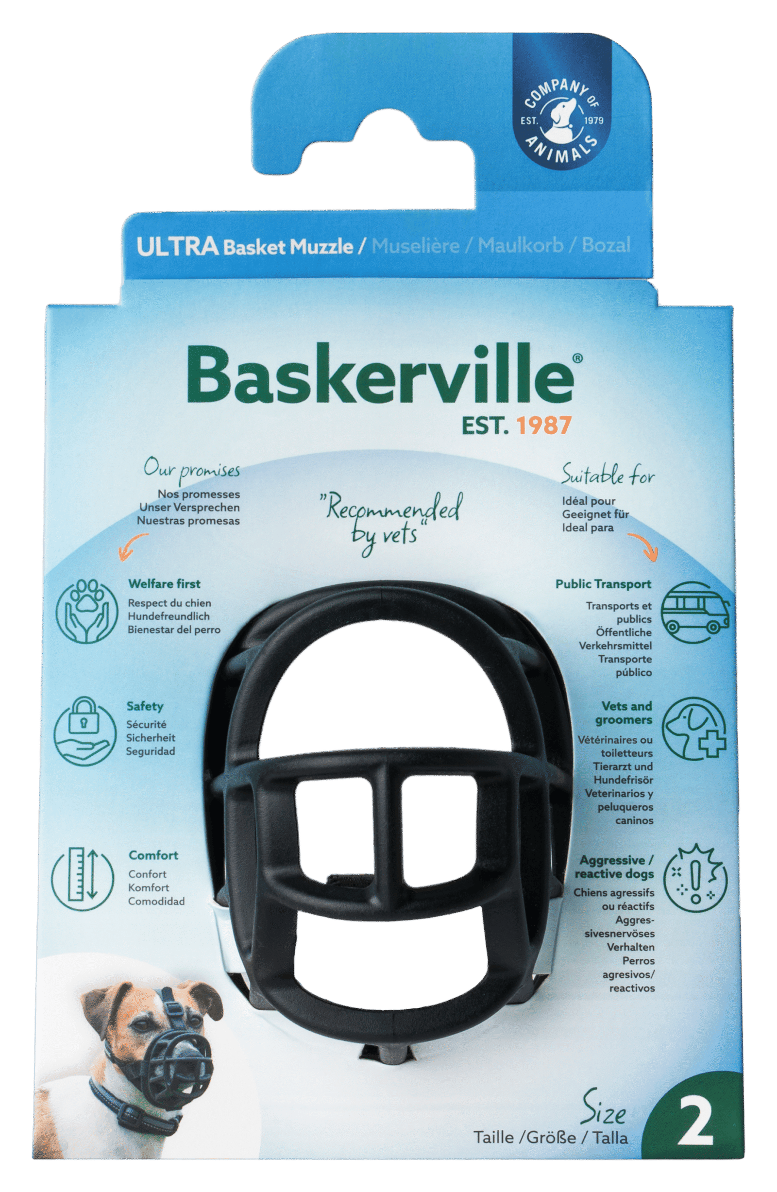 Baskerville permite que seu cão tenha conforto e liberdade durante o uso. Elimina os riscos de mordida em situações de estresse como veterinário, banho ou tosa, ataque a outros cães, etc, sem causar desconforto, estresse ou dor. O cão pode beber água, comer petiscos, arfar sem limitações.