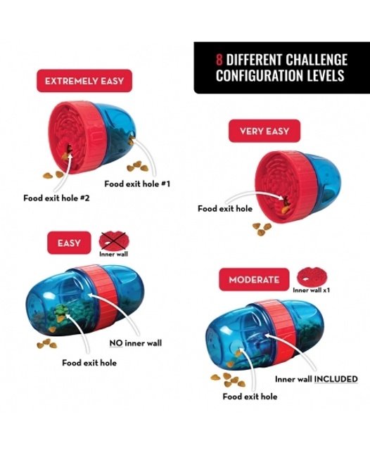 KONG Scuttle Pod oferece 8 maneiras de satisfazer instintos naturais de forragear dos cães através de estímulos mentais e físicos. As partes encaixam-se entre si de maneiras distintas para criar desafios e liberando alimento de maneiras distintas à medida que eles brincam. Você também pode passar algo pastoso nas partes externas das paredes para aumentar ainda mais o desafio e a diversão. Ajuste a configuração para aumentar ou diminuir a dificuldade. Tem capacidade para 3 xícaras de alimento seco. Veja as figuras na lateral da embalagem para entender cada uma das 8 configurações e nível de dificuldade diferentes.