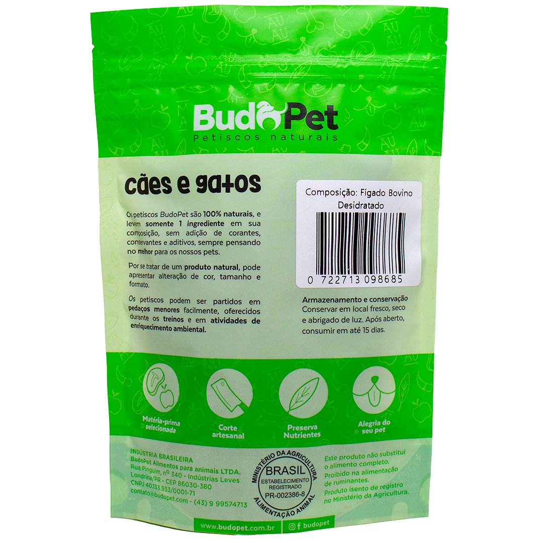 Armazenamento e conservação: Conservar em local fresco, seco e abrigado de luz. Fechada o Stick de Fígado tem validade de 9 meses. Após aberto, consumir em até 15 dias.