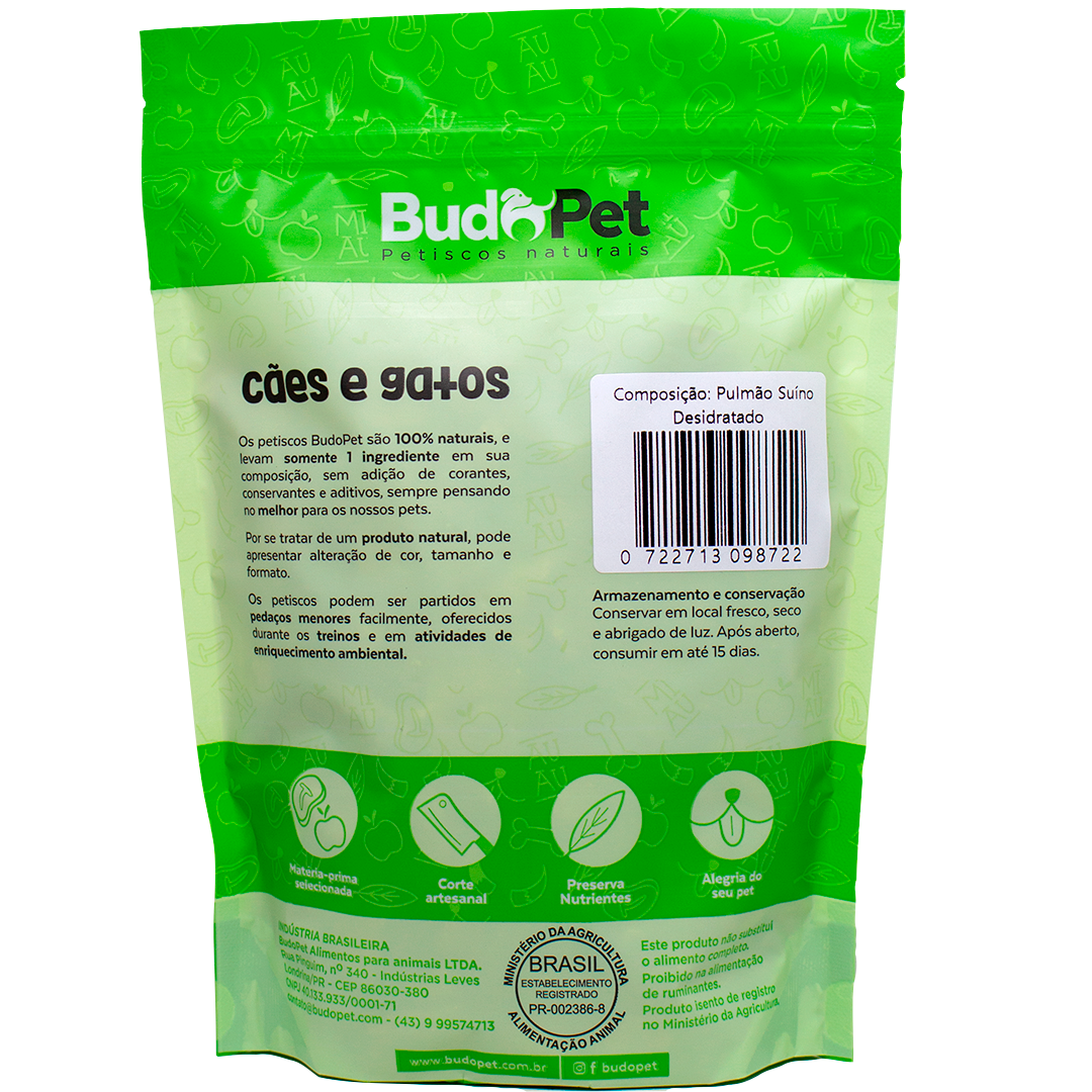 Os petiscos BudoPet são 100% naturais e levam somente 1 ingrediente em sua composição, não possuem aditivos conservantes e corantes, sempre pensando no melhor para nossos pets.